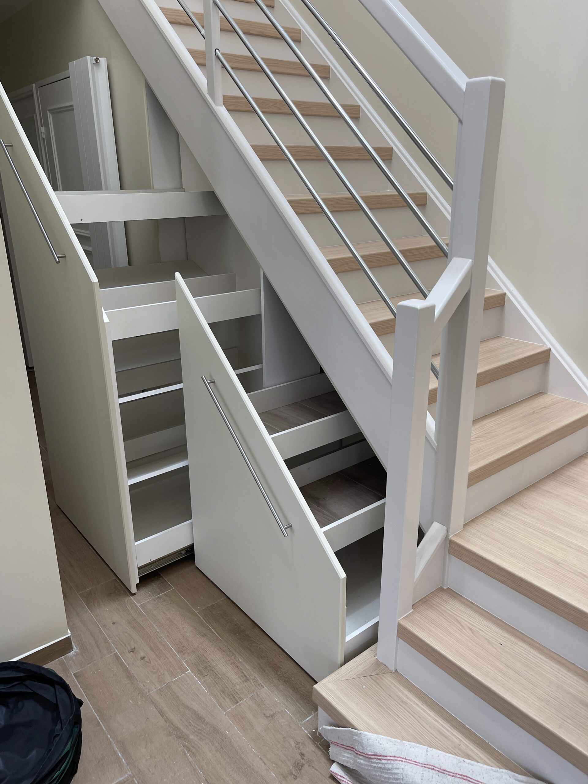 Nous avons conçu et installé des escaliers sur mesure, adaptés aux besoins esthétiques et fonctionnels du client. Chaque réalisation a été pensée pour s’intégrer parfaitement à l’espace, en harmonisant matériaux, style et sécurité.