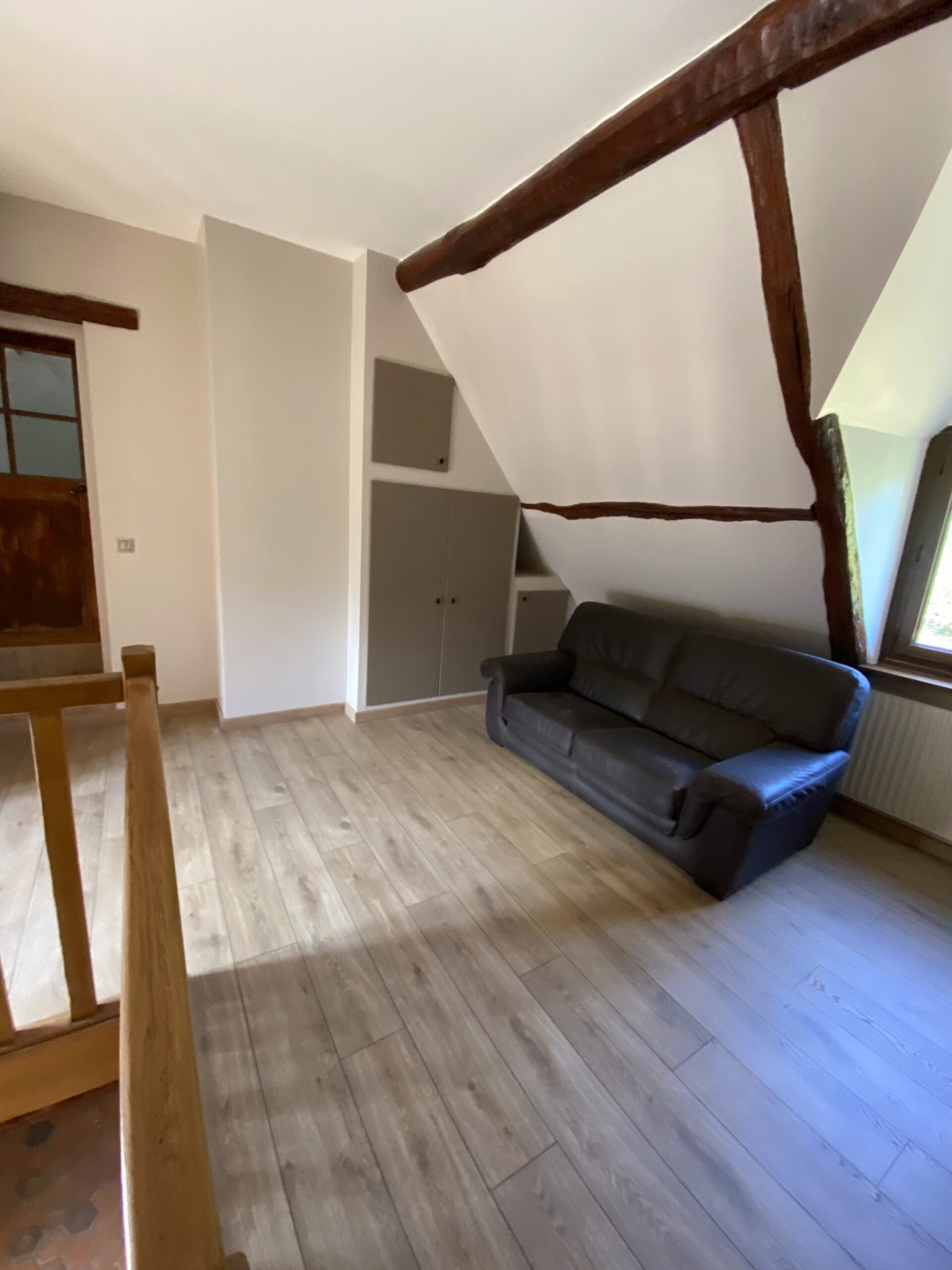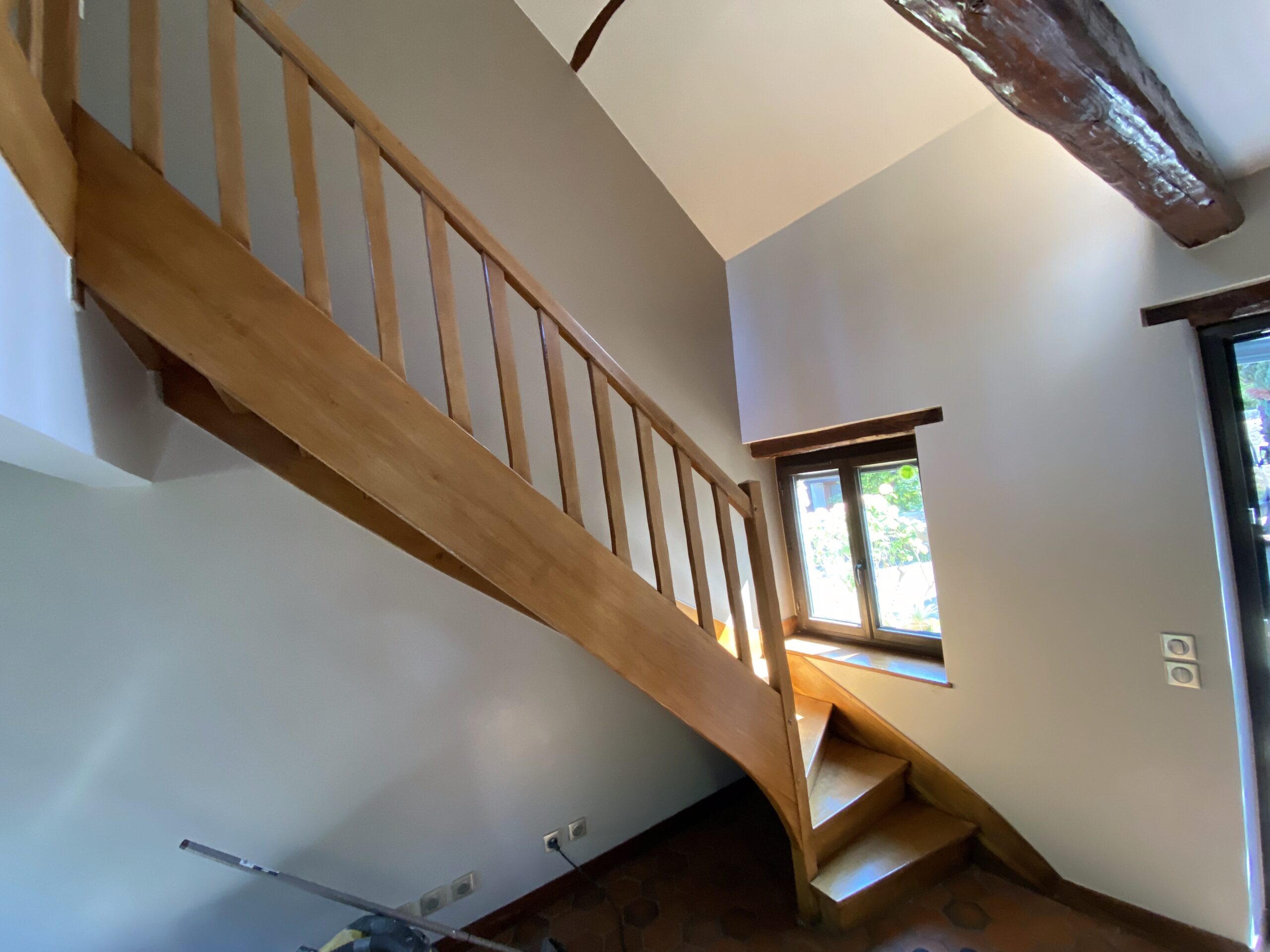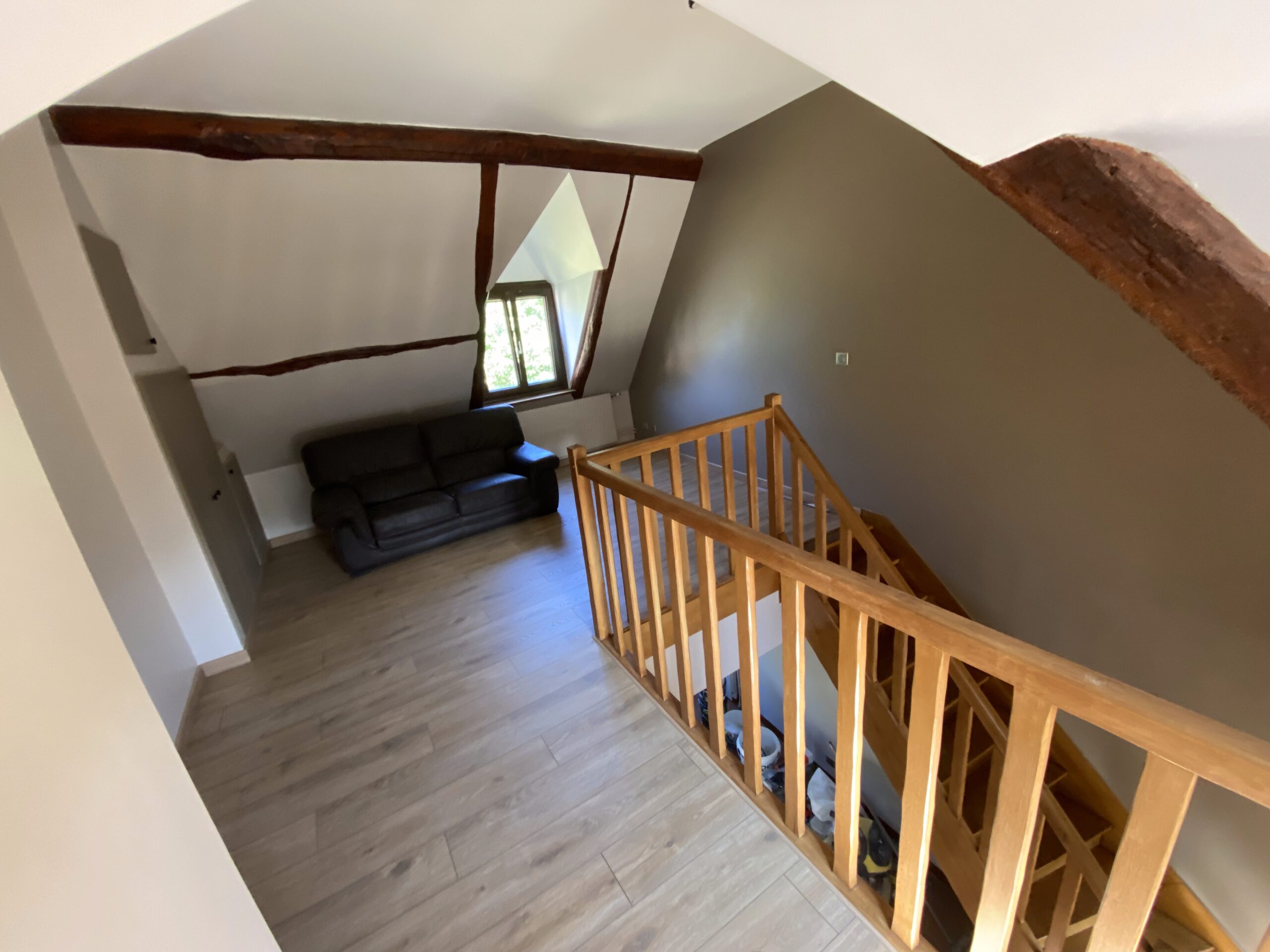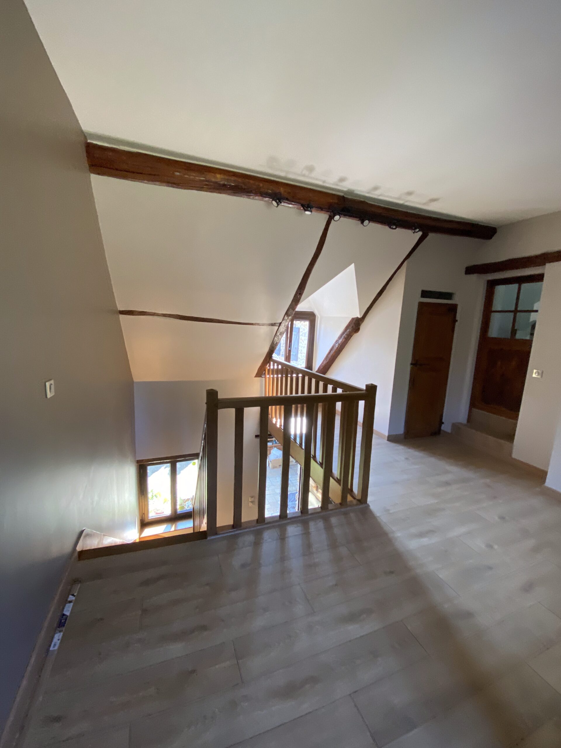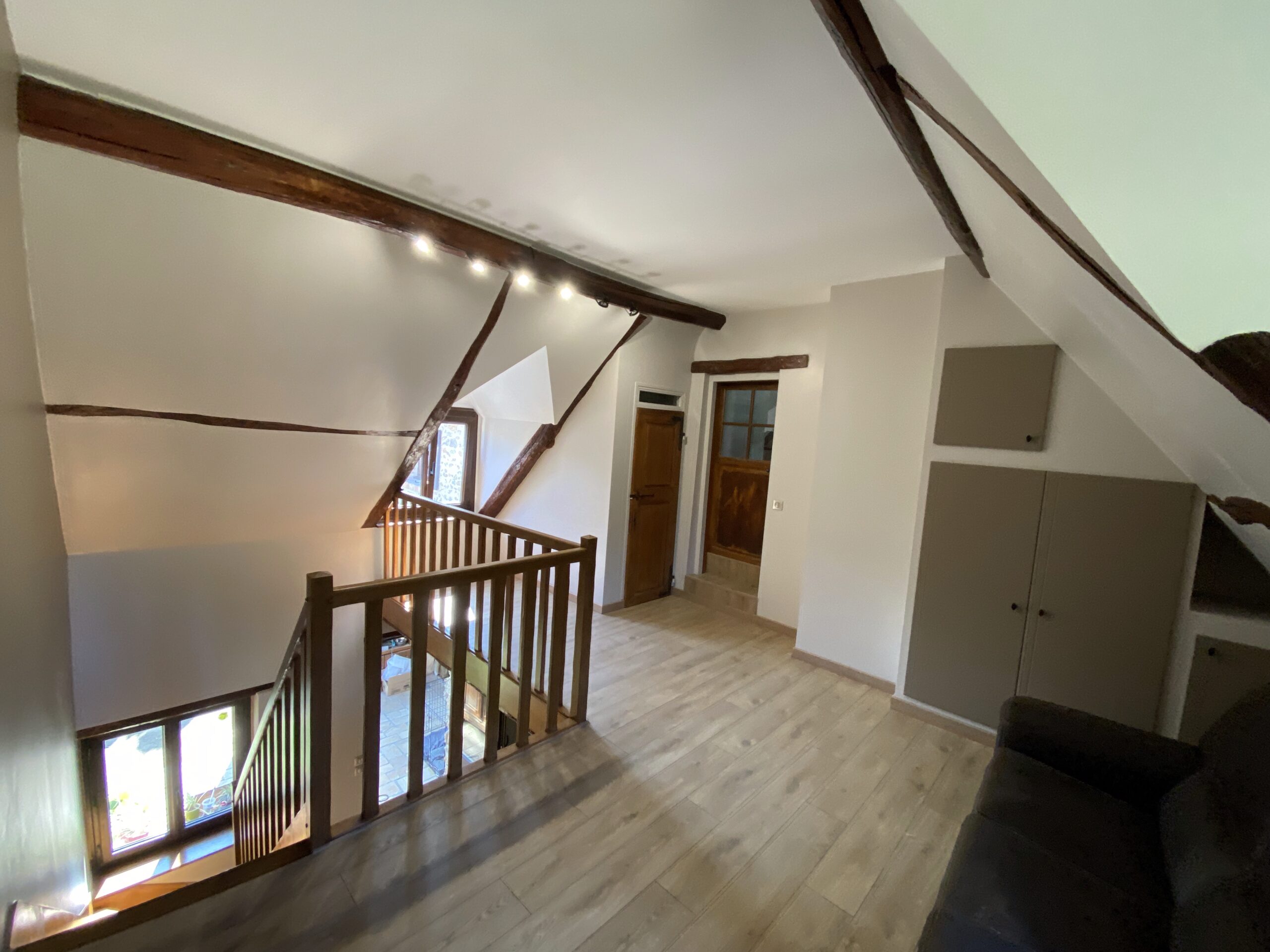 - Pose de nouveaux revêtements de sol, dont parquet à l’étage, avec harmonie des matériaux
