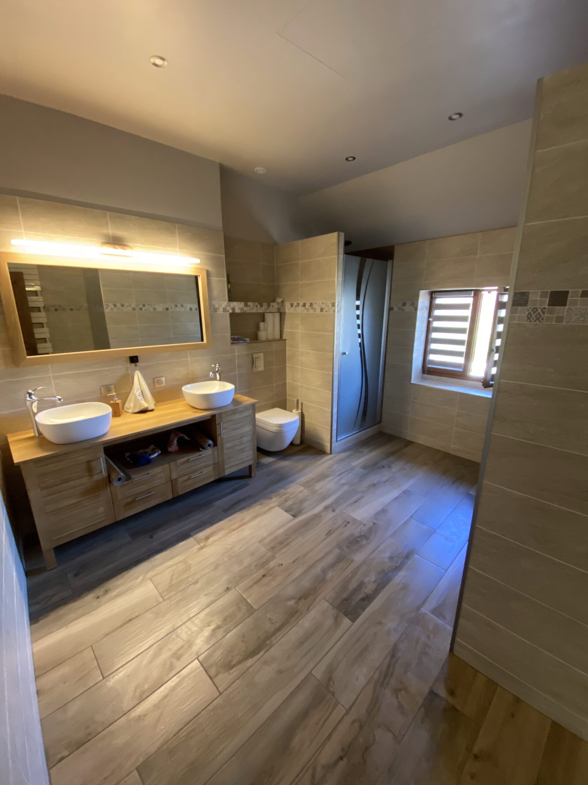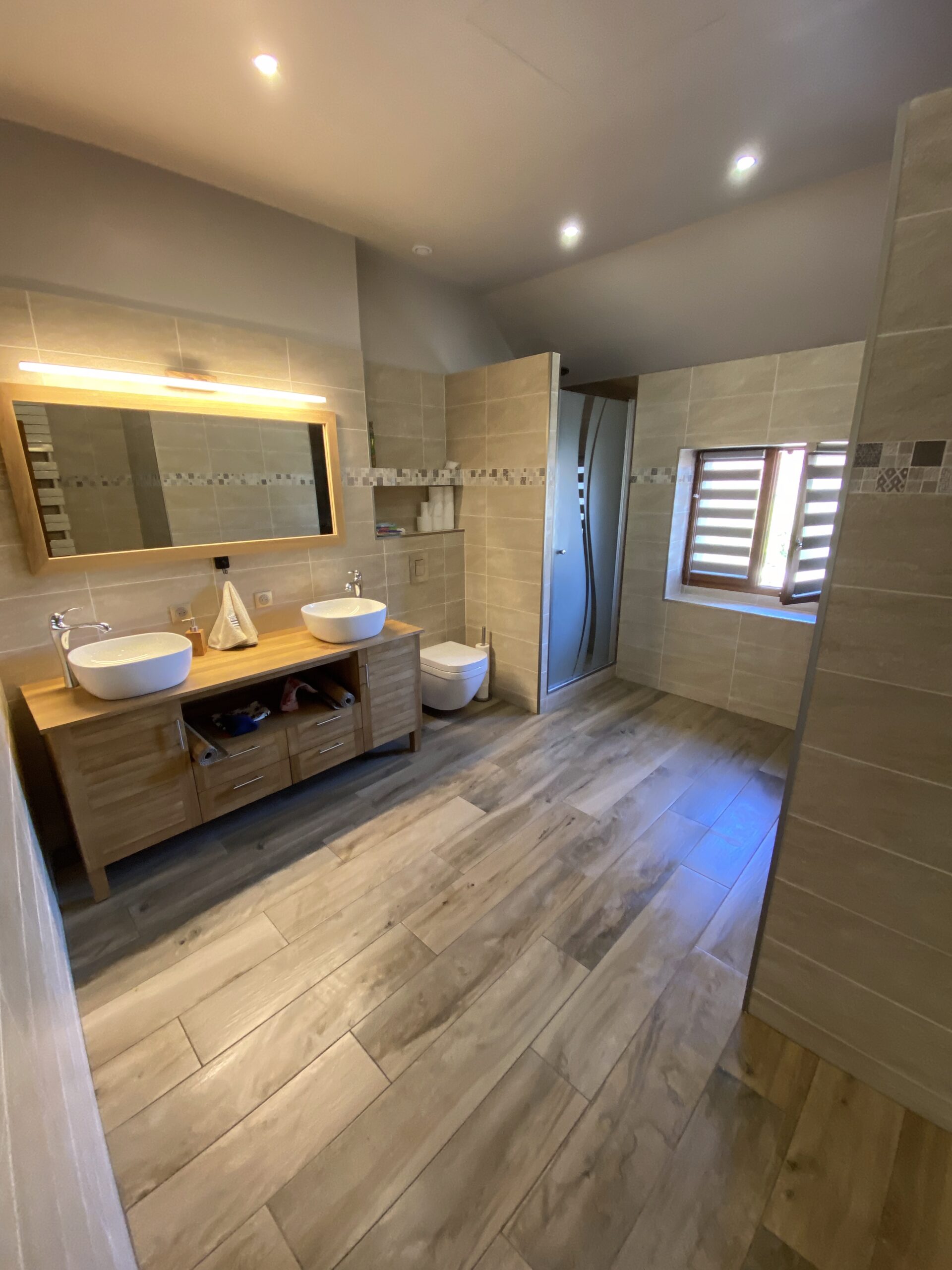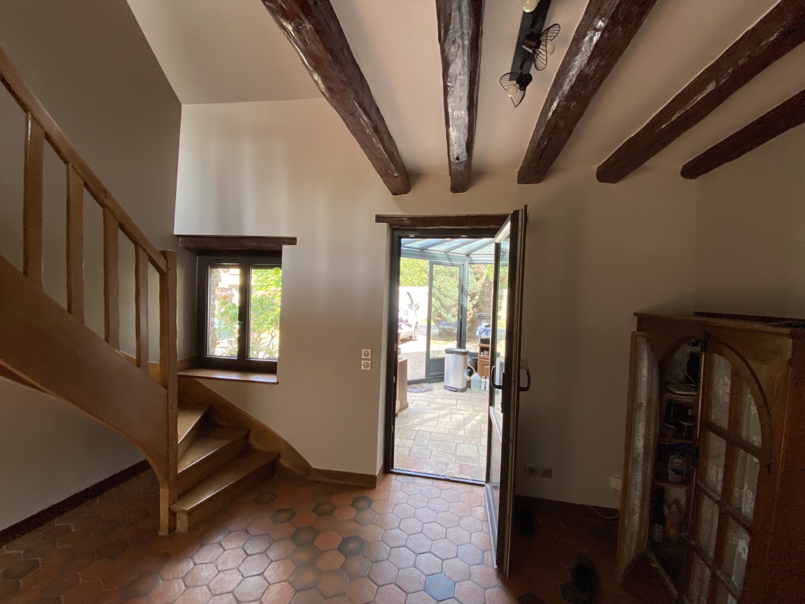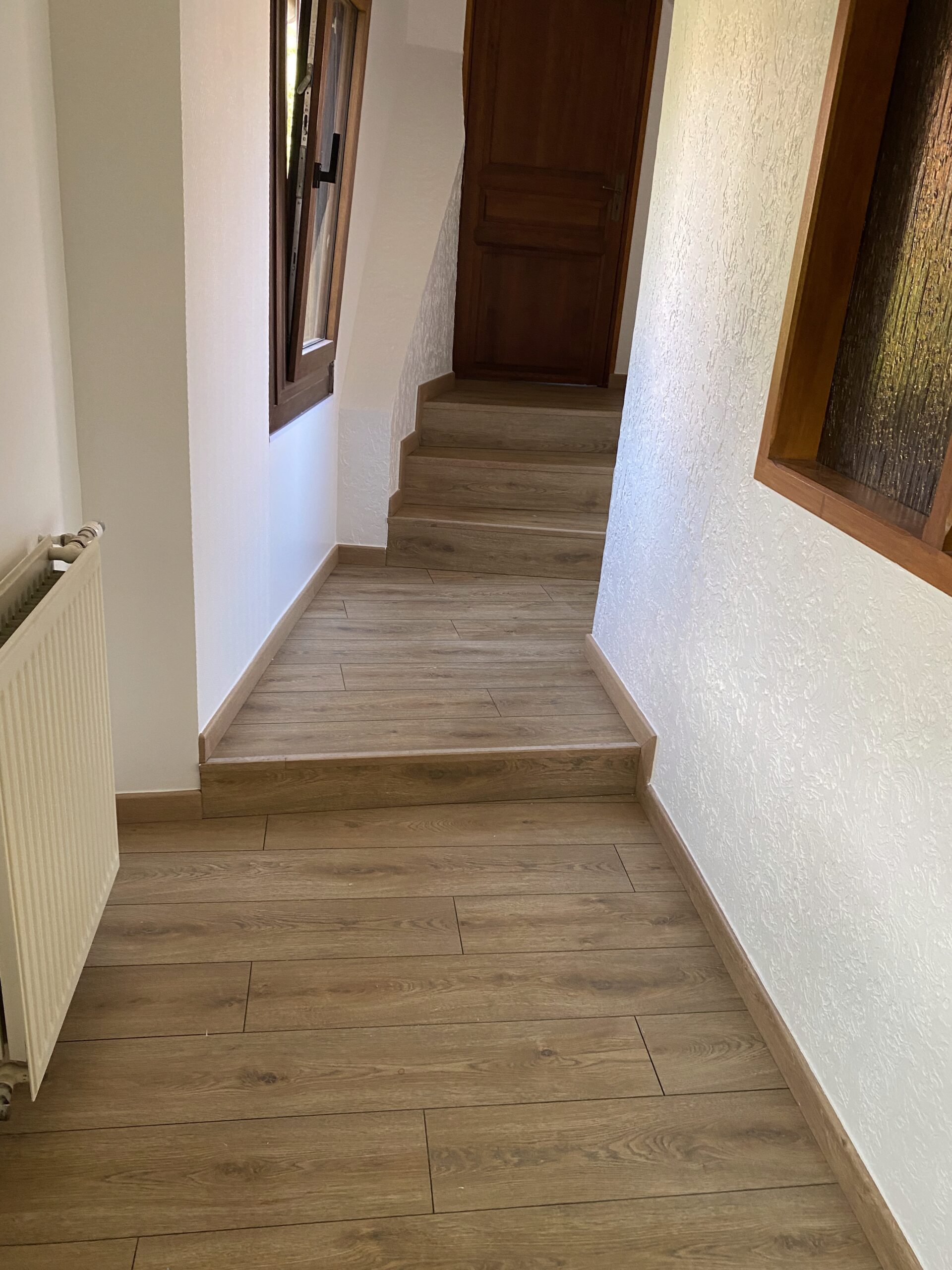 - Pose de nouveaux revêtements de sol, dont parquet à l’étage, avec harmonie des matériaux
