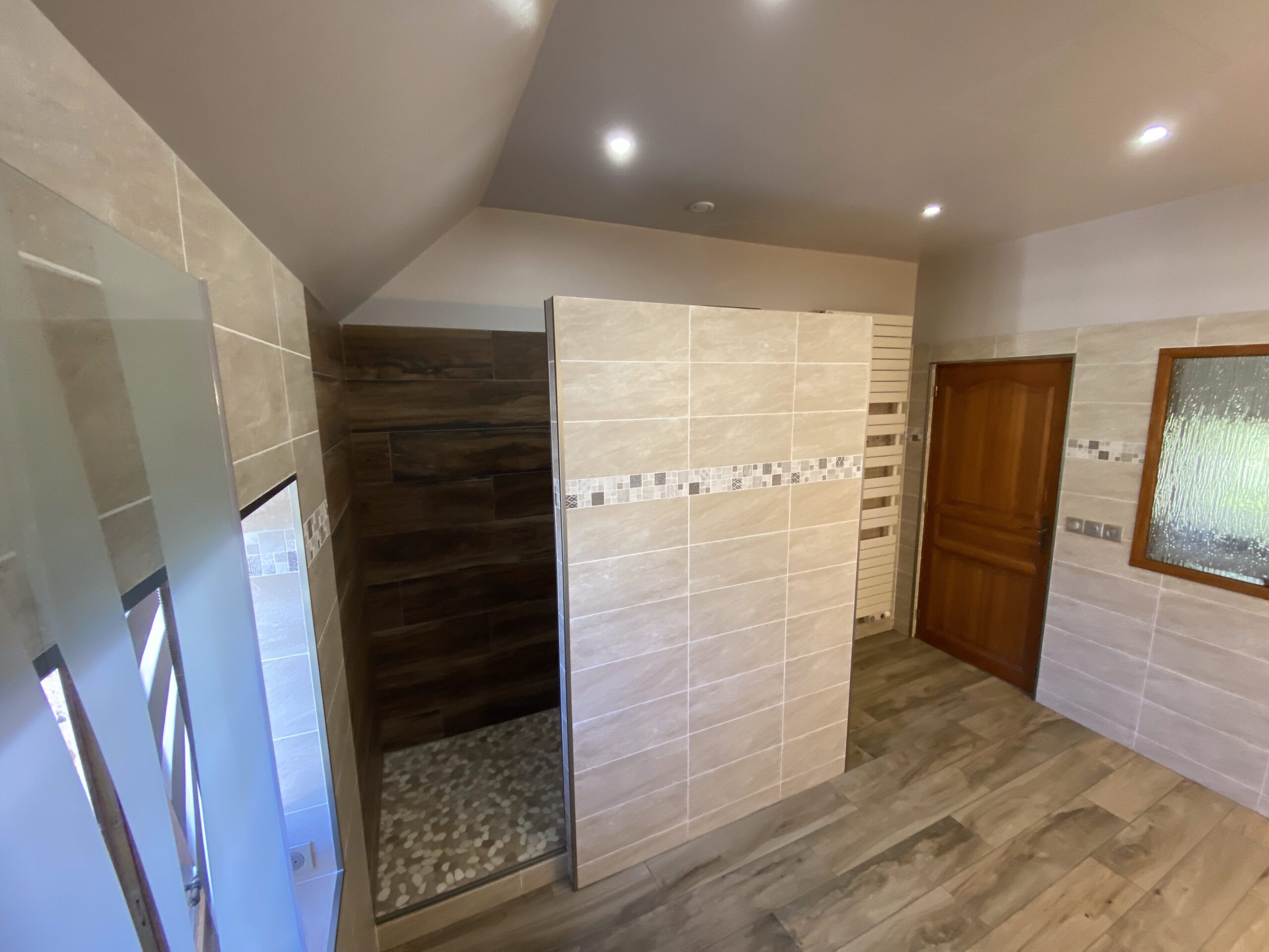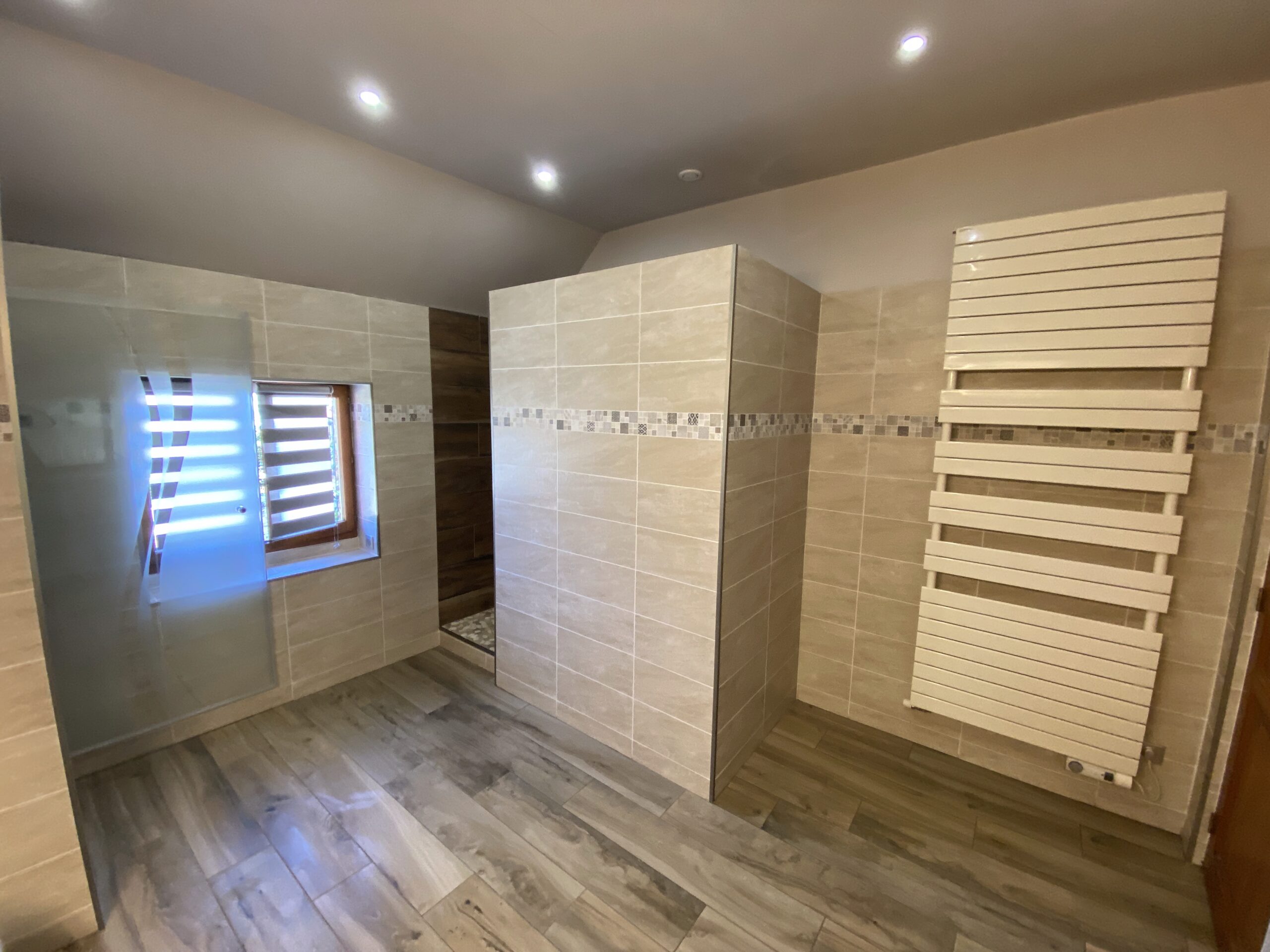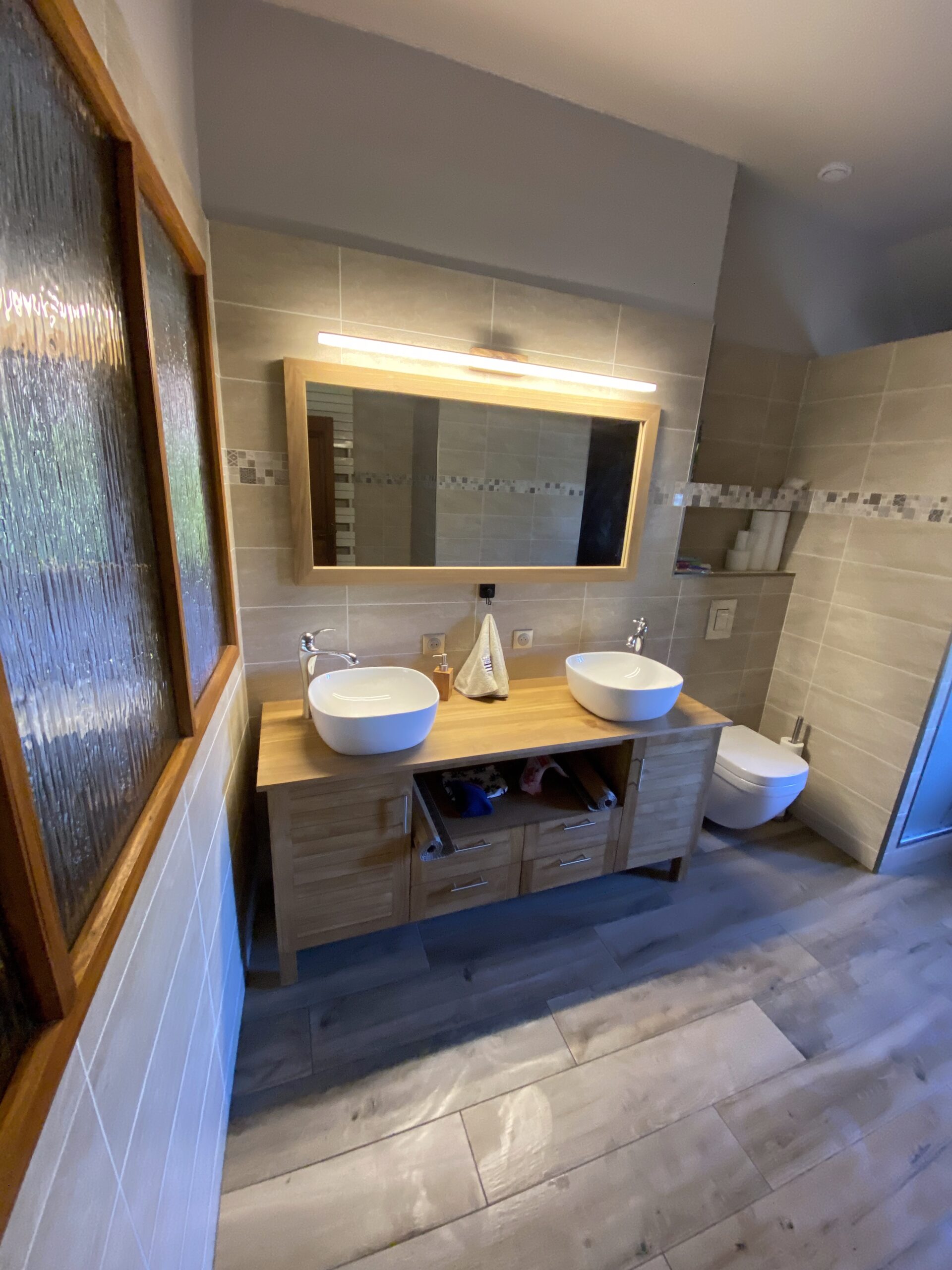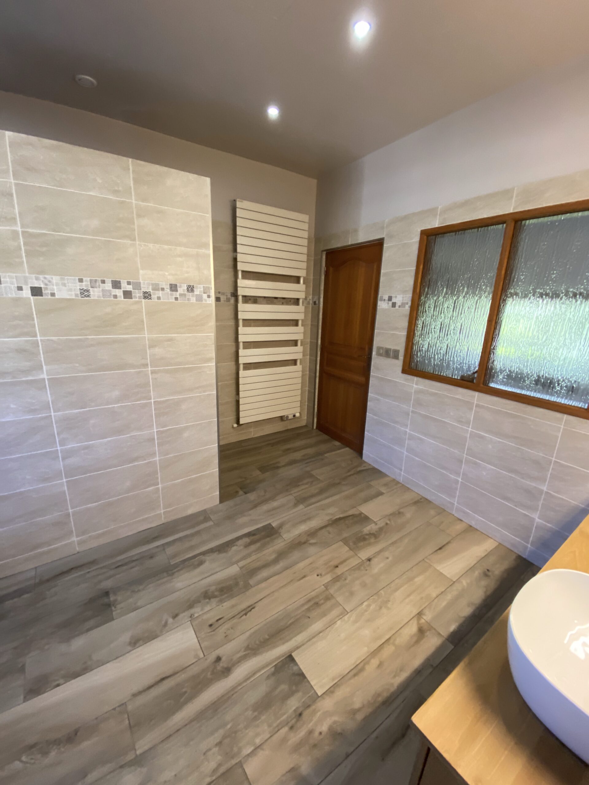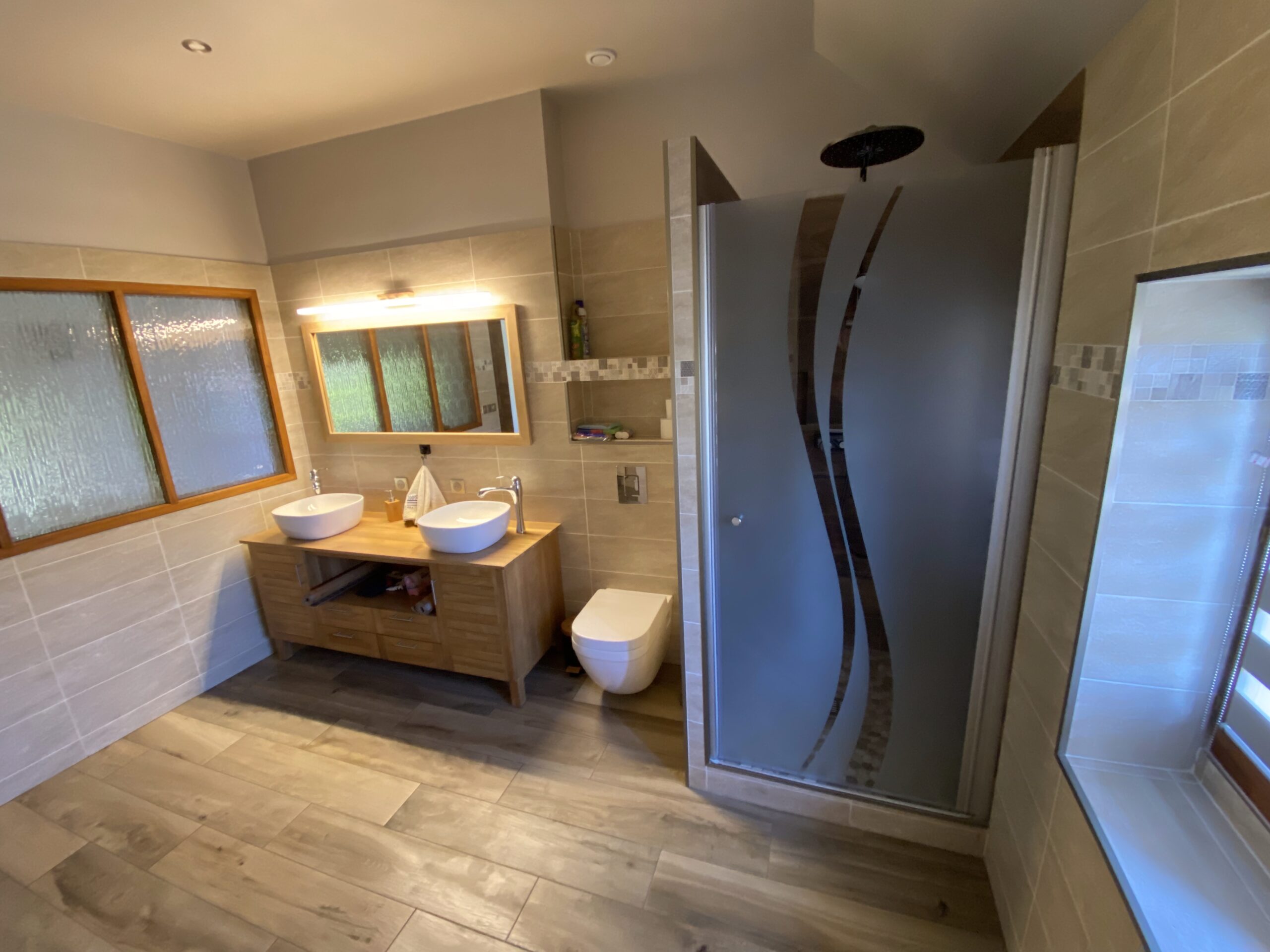 - Pose de nouveaux revêtements de sol, dont parquet à l’étage, avec harmonie des matériaux